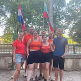 Het was buiten inmiddels 42 graden, dus besloten we de kleurplaten te halen en lekker binnen te blijven. Daarna was het tijd om ons om te kleden en reden we naar Vratsa om uiteten te gaan. De kipschnitzel werd vergeleken met een oliebol, zo vet, en het broodje van de hamburger was verbrand omdat ze een fancy afdruk erop gemaakt hadden, maar we hadden lol met elkaar en dat is het belangrijkste. We haalden een ijsje aan de overkant van het restaurant, waarna Wynsen, Joshua, Neline en Willemieke terug naar het ouderencentrum gingen. Mitchell, Melanie, Moni, David en Viki gingen nog even langs de cocktailbar, waar de meeste een cocktail of biertje bestelden, ging Mitchell aan de aardbeienmilkshake met slagroom en spikkels!